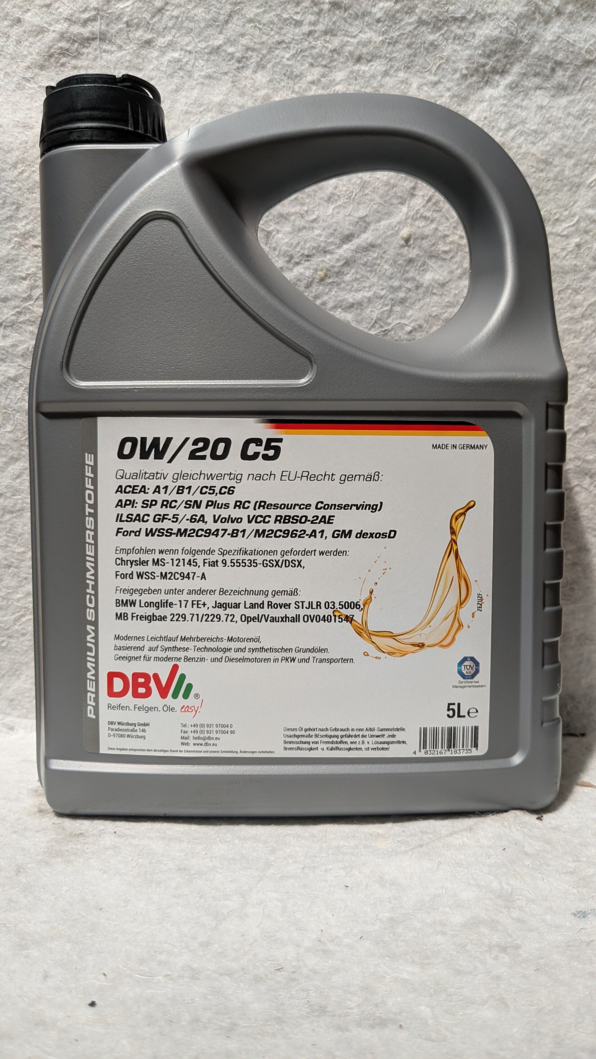 2 x 5Liter DBV 0W-20 C5 SYNTHETISCHES MOTORENÖL ILSAC GF-7A